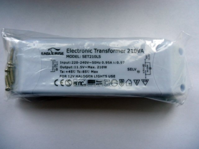 An Eaglerise 210va lighting transformer for insertion into lighting luminaires or surface mounting.