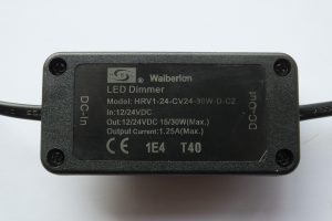 The HRV1-24-CV24-30W-D-C2 is fitted inline between the LED Driver plug and the light fitting which allows the user to switch on and off and dim the light fitting using the rotary knob on the unit.
